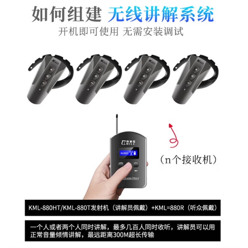 開米樂(KAIMILE)880 耳機/耳麥 1講+100接收+2個64位充電箱 一對多開米樂無線講解器